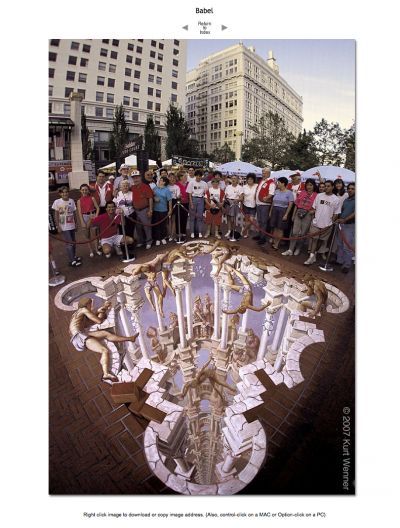 Kurt Wenner's gallery of 3D street art interpretations of renaissance-style art.