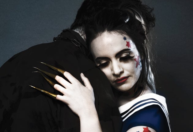 The theatre is set up in the round, with the audience on four sides. It makes a surprisingly big, well-focused dance space. Love and War starts atmospherically, with a down-at-heel fairground mood. In Marian Bruce's stage design, tattered bunting hangs overhead. Cicadas chirp on the soundtrack. Greig Cooke's Zeus could be a magician or a circus barker, dressed in a shabby suit with trilby and made-up face. There's a deliberate clash of now and then: music from Queens of the Stone Age and Schubert, gods and heroes in party dresses and 1950s leather jackets.