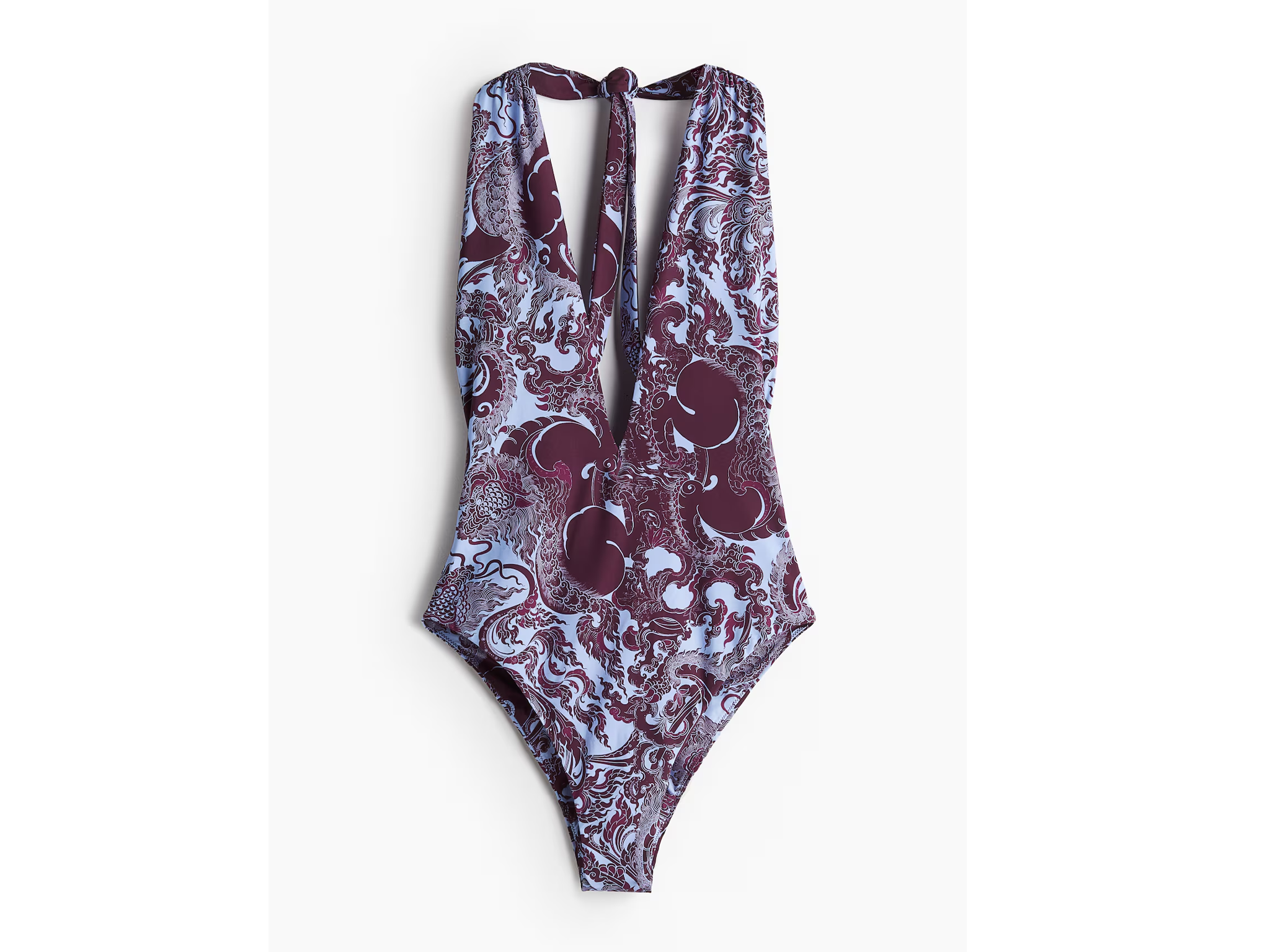 H&M x The White Lotus patterned halterneck swimsuit: £37.99, Hm.com