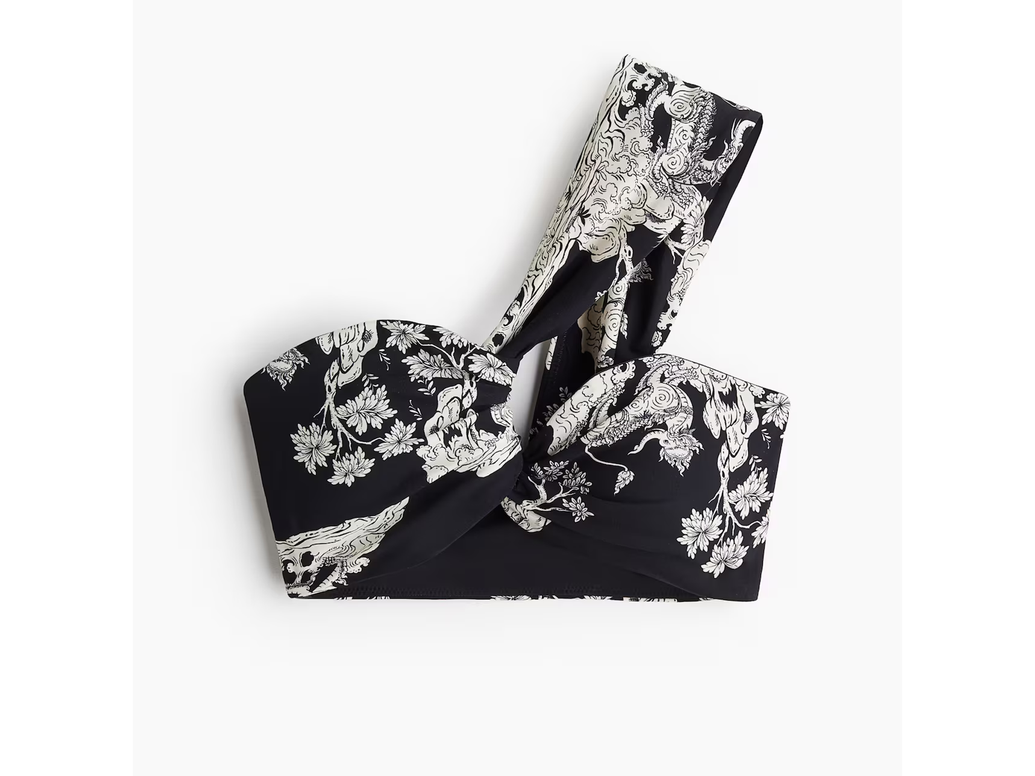 H&M x The White Lotus one shoulder patterned bikini top: £27.99, Hm.com