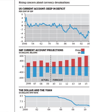 The dollar/yuan relationship is the hot one, but by no means the only issue. The US is also being accused of deliberately trying to push down the value of the dollar, and countries such as Brazil feel they are being targeted. And elsewhere Japan, South Korea, Taiwan, Thailand and Colombia have all been criticised for trying to manipulate their currencies. Timothy Geithner, the US Treasury Secretary, said on Wednesday that "all of us will be worse off" if emerging economies did not change their tactics.