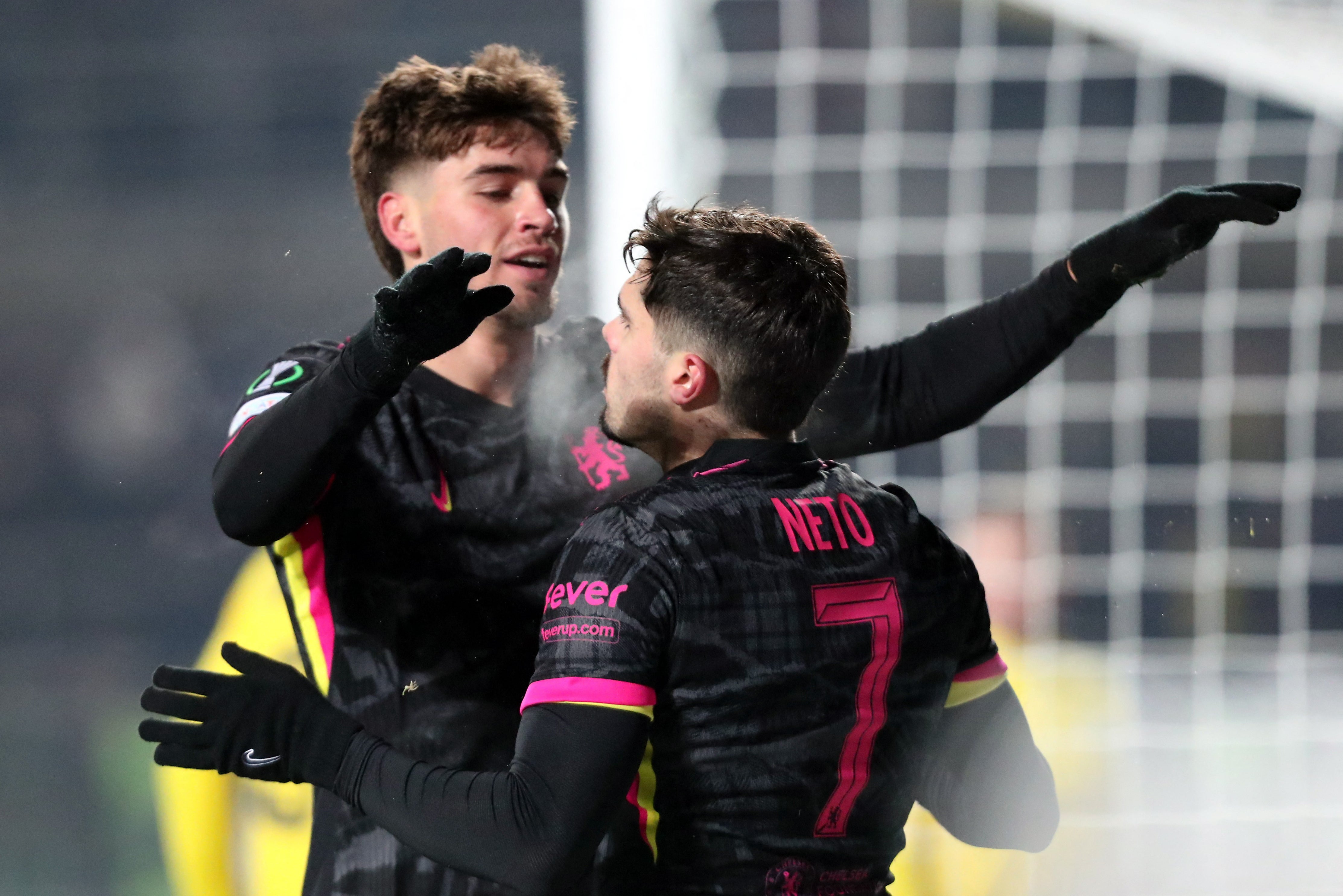 Neto had Chelsea’s first chance in freezing conditions in Kazakhstan, skating in off the right and striking low towards the near post, goalkeeper Mukhammedzhan Seysen dropping low to his left to save.