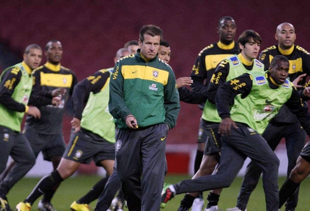 Except it was Brazil. The track-suited whistler in the middle of the Emirates pitch last night, preparing for this evening's friendly against Republic of Ireland, was Dunga, not Sam Allardyce, and the Brazilian coach did not spend much of the session rehearsing set plays because he expects the Irish to deliver a few. This is the new Brazil, like Blackburn, but with brighter shirts.