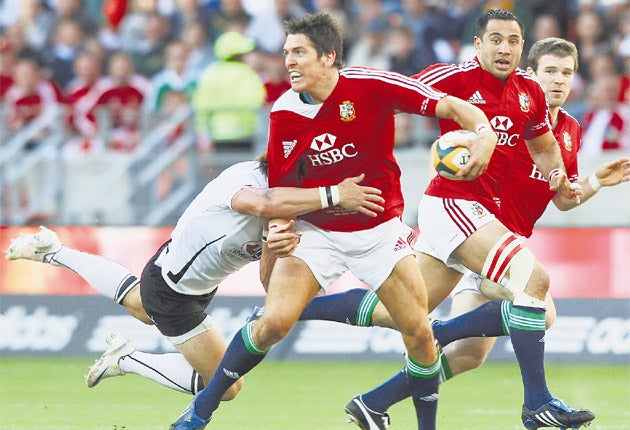 O'Gara then hit a post with as long-range shot before converting the penalty try, which resulted from Andrew Sheridan's comprehensive dismantling of Dean Greyling at a driving Lions scrum. It was a sure sign of the efficiency of the tourists' set-piece power and organisation. Unfortunately, the raw physical power required to draw the sting from 15 pumped-up South Africans around the field was noticeably lacking. Unless the problem is addressed quickly, the Test match in Durban could be a painful experience in more ways than one.