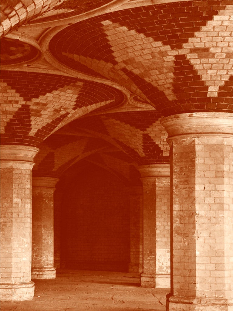 "An extraordinary pedestrian underpass of octagonal columns fashioned from cream and orange brickwork. It is one of the few elements of the vast exhibition complex to have survived the great inferno of 1936."