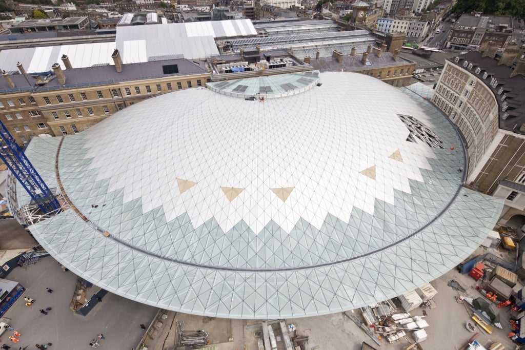 But the new Western Concourse is the redevelopment’s crowning glory. The spectacular geometric roof structure has been cleverly blended with the station’s original architecture to create a space for passengers that is three-times larger than the current concourse, with improved links to both the London Underground network and St Pancras station.