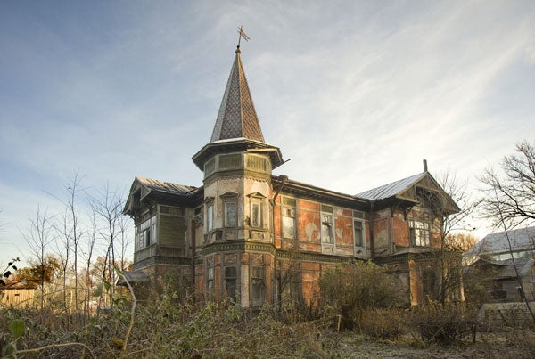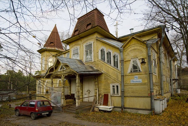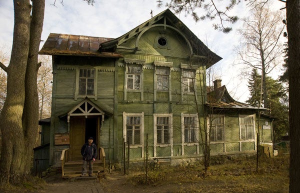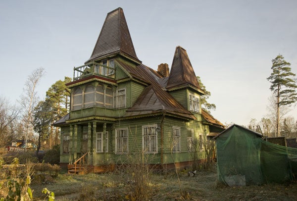 Poignant, because many of the erstwhile dachas were just piles of ash – and fire had always been the great fear for dacha-dwellers. But many of the ashes were from recent fires; developers had bought the land, and simply cleared it to build blocks of flats. "If there's anything I can do to stop this beautiful piece of history from disappearing, I'll do it," says Nasmyth. "But the clock is ticking." But he also found much to be cheerful about. The surviving wooden buildings may now largely be inhabited by poor people, with car seats or a bath tub in the garden, but some have been immaculately restored. Retro-chic is invading Russia as it is everywhere else where money can breathe new life into an elegant architectural past. Some dachas still have their original stained-glass windows, or their Islamic eaves-decoration; they tended to be well insulated against the cold. He shows me an art-nouveau shop, just like its contemporary illustration, and puts a period photograph of a grand stone dacha (with servants standing in front) beside the photo of the same building today in perfect condition.