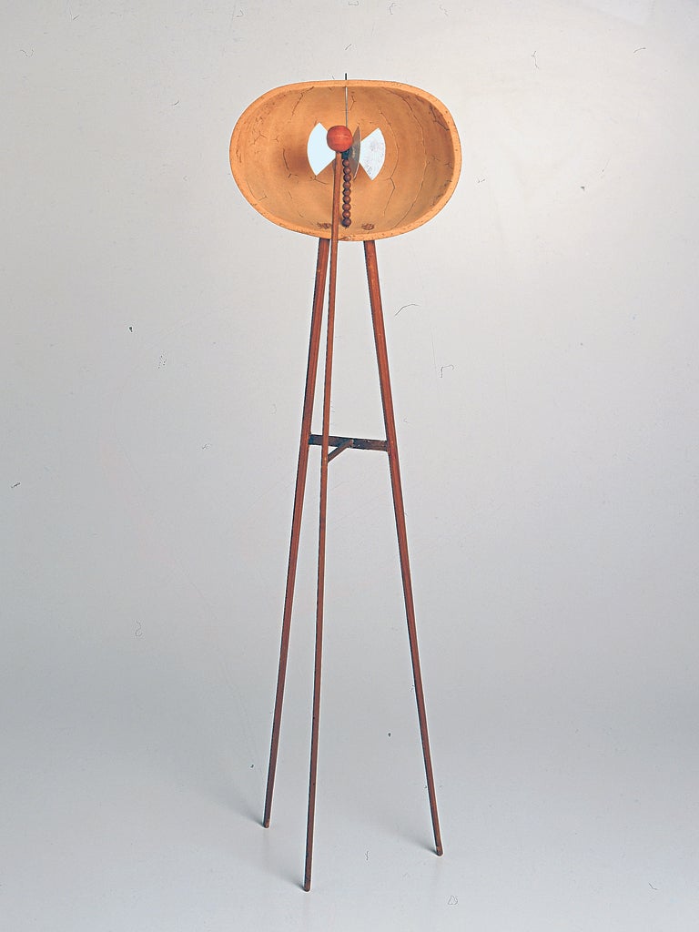 What made Munari so individual and so different from his colleagues was not just his wit but also his sheer inventiveness. He was one of the first artists to create mobiles as part of his Useless Machines in the 1930s in an effort to add dynamics and spontaneous movement to sculpture. They still hang as modern and as graceful as an Alexander Calder, who started using mobiles at roughly the same time. The Insects and Arrhythmia of wire, fabric, clockworks and bits of metals from the 1940s and 1951 are installations before their time, but also astonishingly light and inspirited. Sensitive no 7 from 1946 is just made from curved wire and coloured wood but it is, as its title indicates, almost spiritual in its feeling.