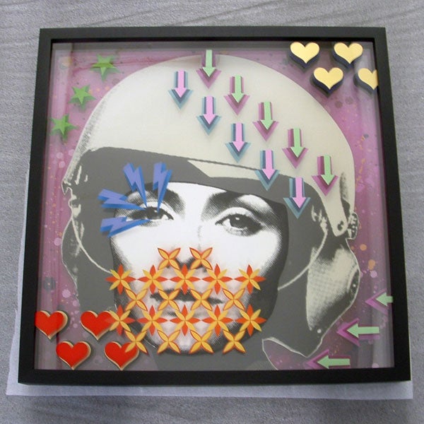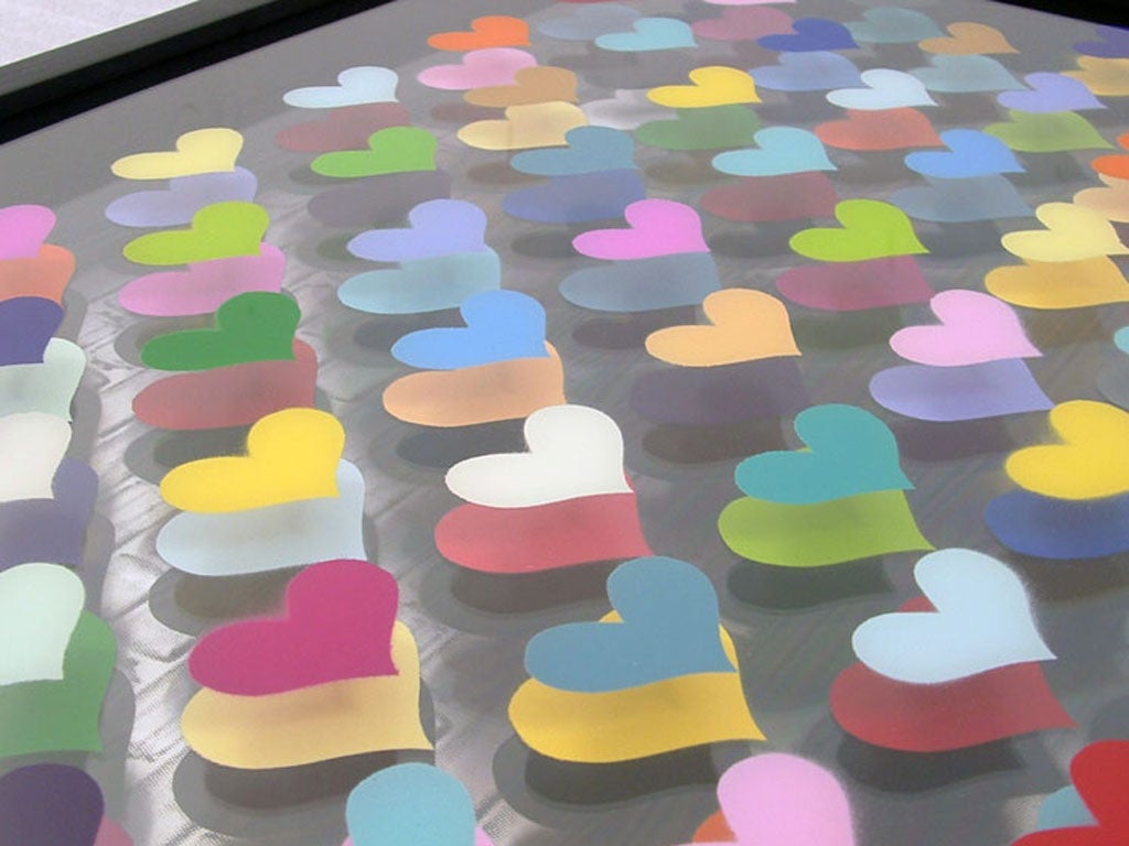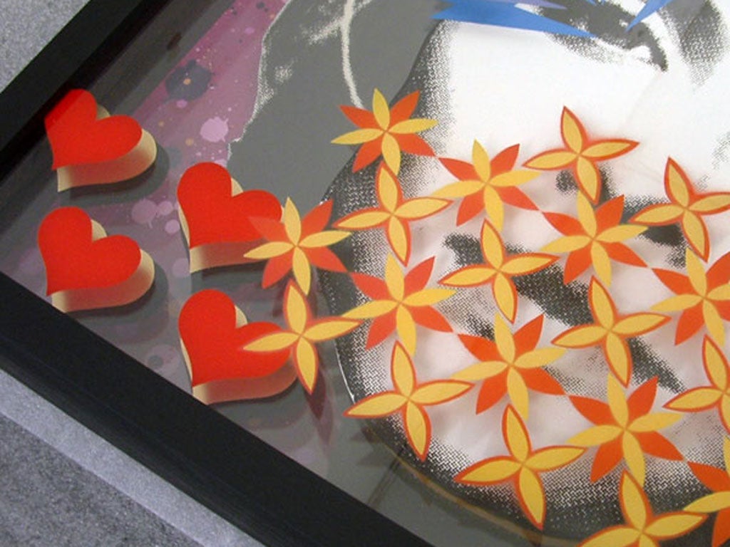 East End duo Static, comprised of young artists Tom and Craig, takes on this notion of the flat versus the three-dimensional to create works mixing screen printing and stenciling on layers of glass, Perspex and aluminium, and toying with light, reflection and transparency, resulting in 'floating' images.