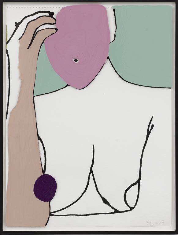 Though concerns with neutrality have remained, to an extent, in Hume’s work over the years, his latest exhibition, The Indifferent Owl, which takes place over two of White Cube’s galleries, returns to the pared-back colours of the artist’s earlier work, and to its shoulder-shrugging objectivity. The inspiration for the title of the exhibition, and the painting it is named after, was a hooting owl that the artist heard outside the window of his home in upstate New York, where he lives for several months of the year. In the morning, outside, he saw a deflated party balloon, and imagined the magnificent owl, watching the balloon deflate, not curiously, but with an utter lack of response to the human joy of celebrating birth.