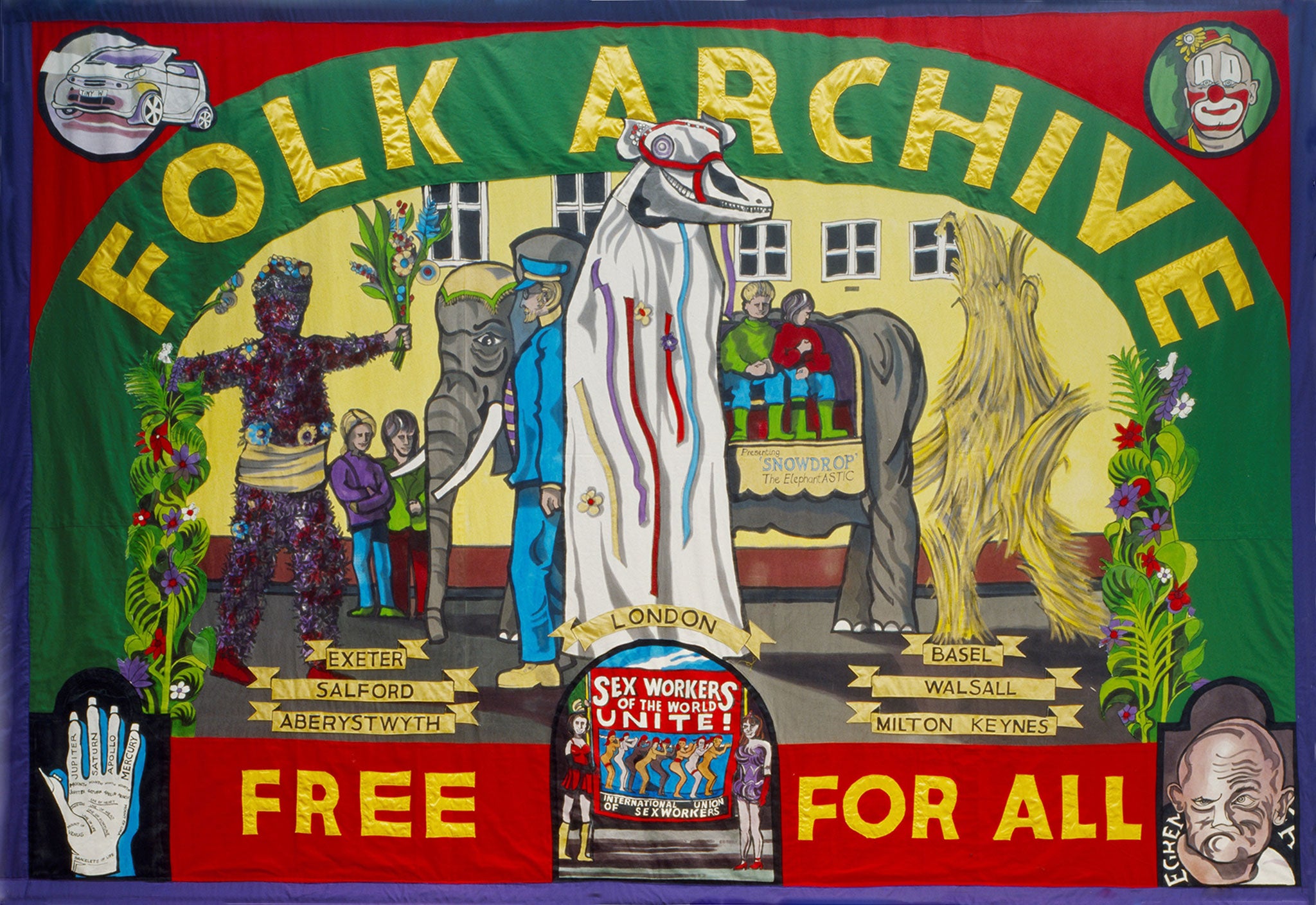 The show includes work from Jeremy Deller and Alan Kane's touring people's art show, Folk Archive (including contemporary banner-maker Ed Hall's work, above) while older pieces include David's portrait of republican demagogue Jean-Paul Marat lying dead in the bath after being stabbed by a young royalist, and early protest pieces by NYC anti-establishment collective, Guerrilla Girls.