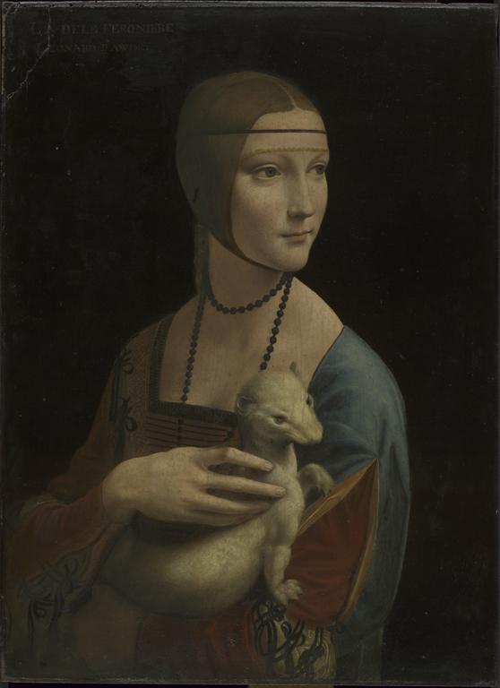 You can talk, as Leonardo's contemporaries did, of the harmony of composition. You can point, as art historians do, to the way that your eye is drawn from her hand and pet up to her face, the manner in which she dominates the space, her pale skin and fine features set against a plain background picked up in the black of her necklace, hairband and decorations on her dress. You can comment, as the exhibition does, on the exquisite detail in the costume, hair and the ermine's head. But in the end there is an ethereal quality about the portrait which is above and beyond the jewelled perfection of the parts, a look in the eye of the woman and a grace in her poise which speaks to the idea of beauty as much as the person of the sitter.