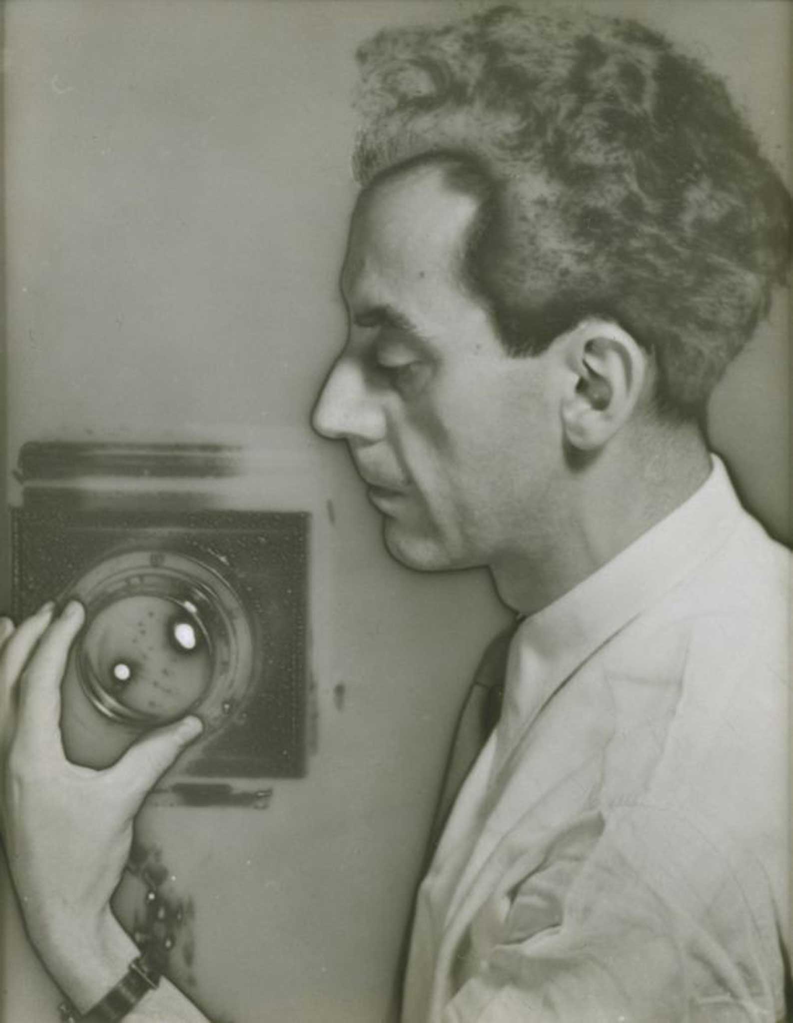 Miller was with him, too, when he made the rayographs in his series, "Électricité", just as it was she who hand-coloured black-and-white film footage found in a Paris flea market and projected it on to the white-dressed revellers at the Count and Countess Pecci Blunt's ball, the Bal Blanc, in June 1930. It was Ray who had given Miller her first Kodak camera; by 1930, it was not always easy to tell their work apart. That year, Miller fished a discarded photograph he had taken of her out of the dustbin in Ray's darkroom and cropped it into a work of her own. He, outraged, slashed the picture's neck and splattered the gash with drops of red ink.