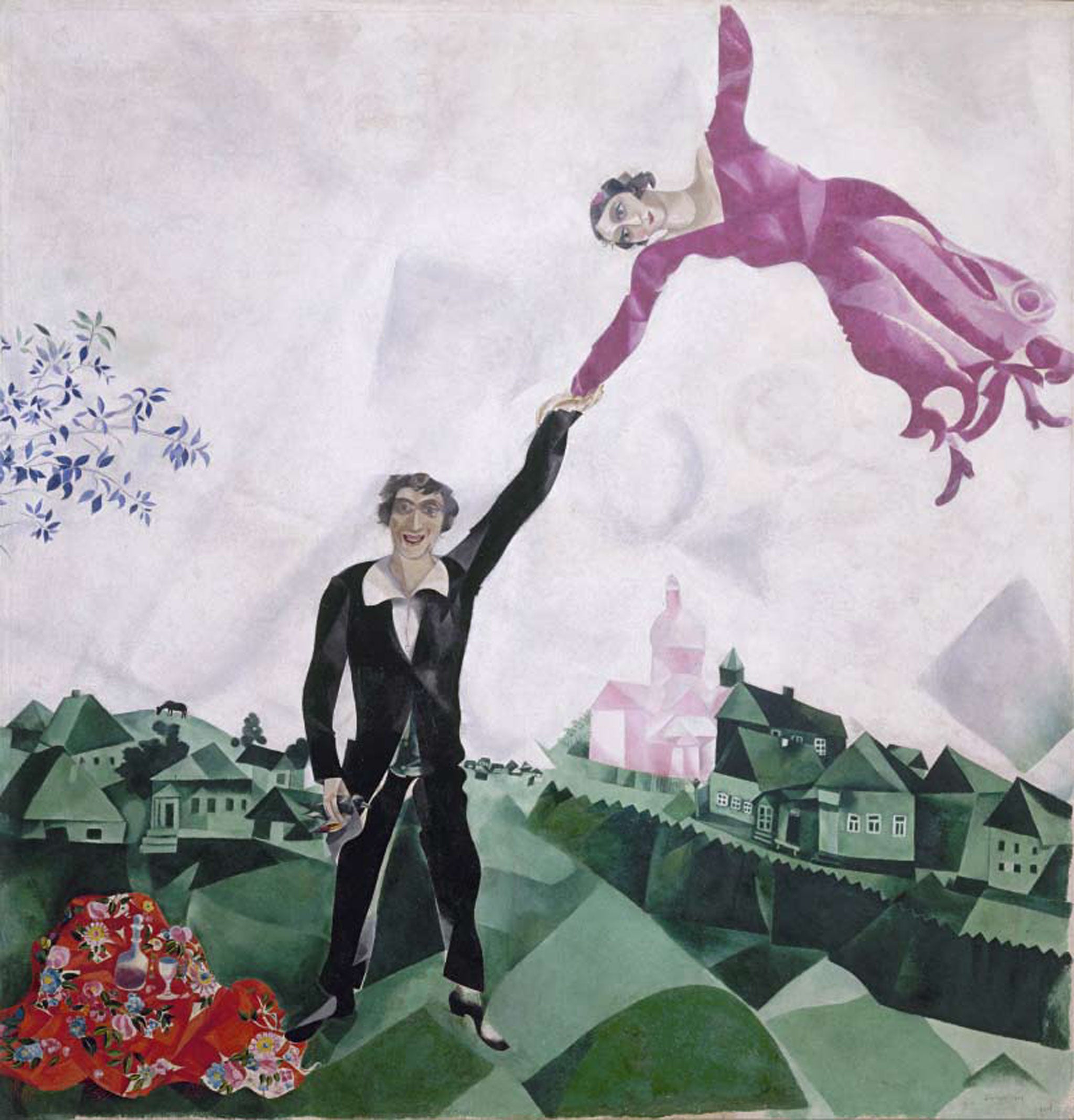 There is a temptation to treat Chagall’s enforced stay in Russia as a burden. But it enabled him to marry his sweetheart, Bella, brought him a clerical job that kept him out of the war, restored him to a Jewish culture then being actively encouraged by the authorities and, after the Revolution, gave him a job as visual arts commissar of his old stomping ground, Vitebsk. His Blue Lovers on meeting Bella in 1914 is one of the fondest paintings in 20th-century art, as The Promenade of 1917/18, in which he holds a soaring wife, is one of the most joyous.