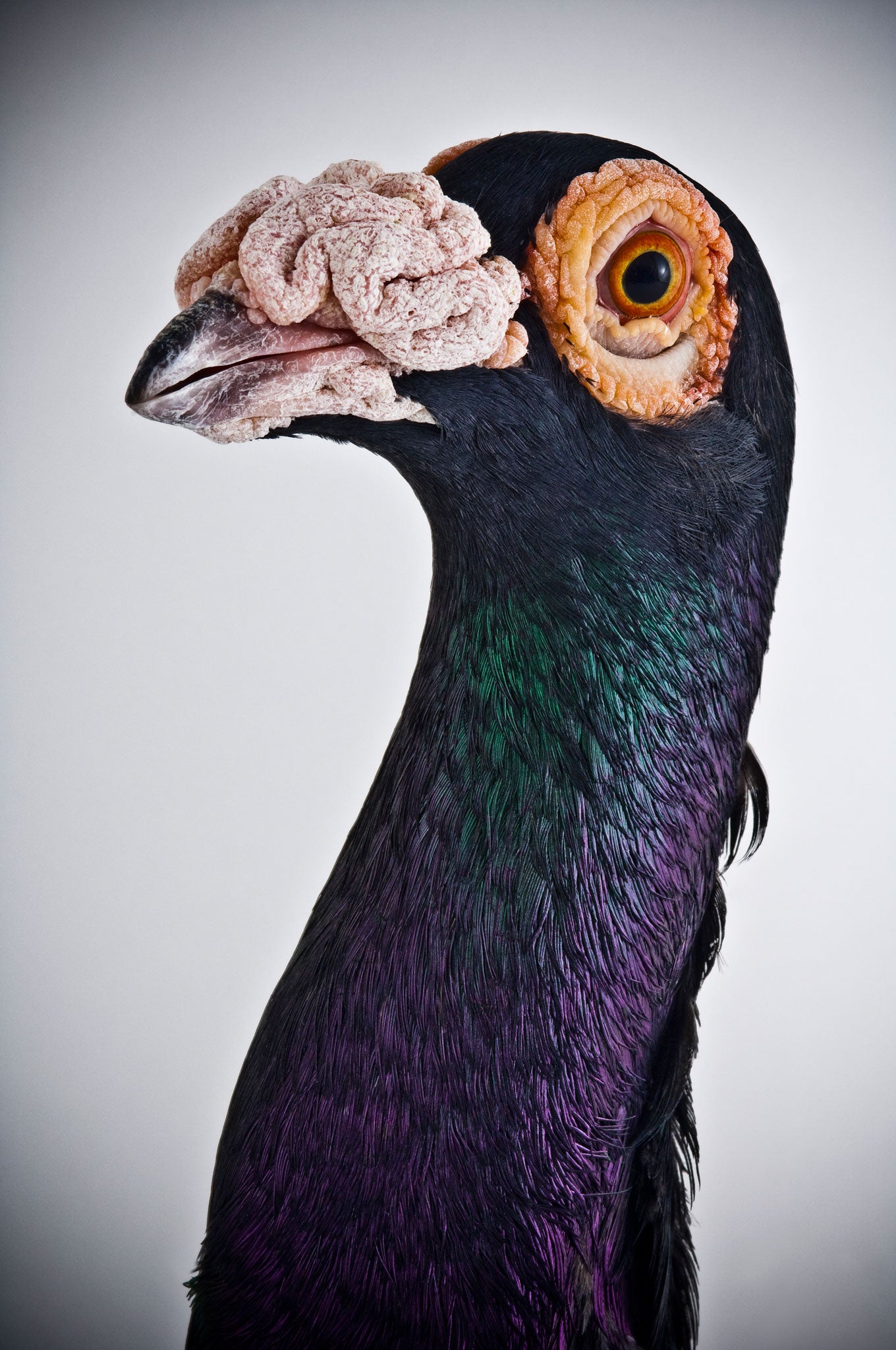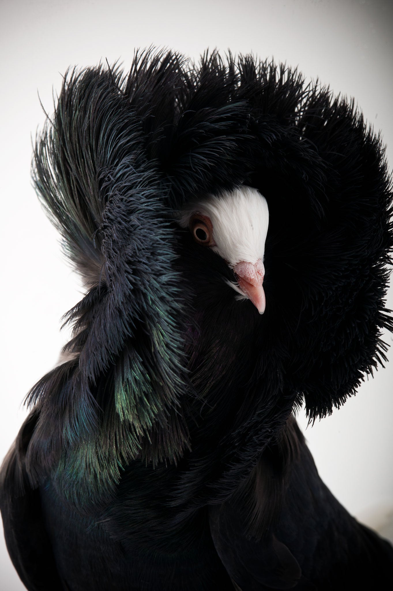 In tribute to Darwin's work with the breed, 150 years on the British photographer Richard Bailey decided to undertake his own "experiments", creating a portable studio that he took around the UK's national shows to take formal portraits of the country's finest "fancy pigeons" – domesticated varieties of the sort that you'd rarely see strutting around on the street.