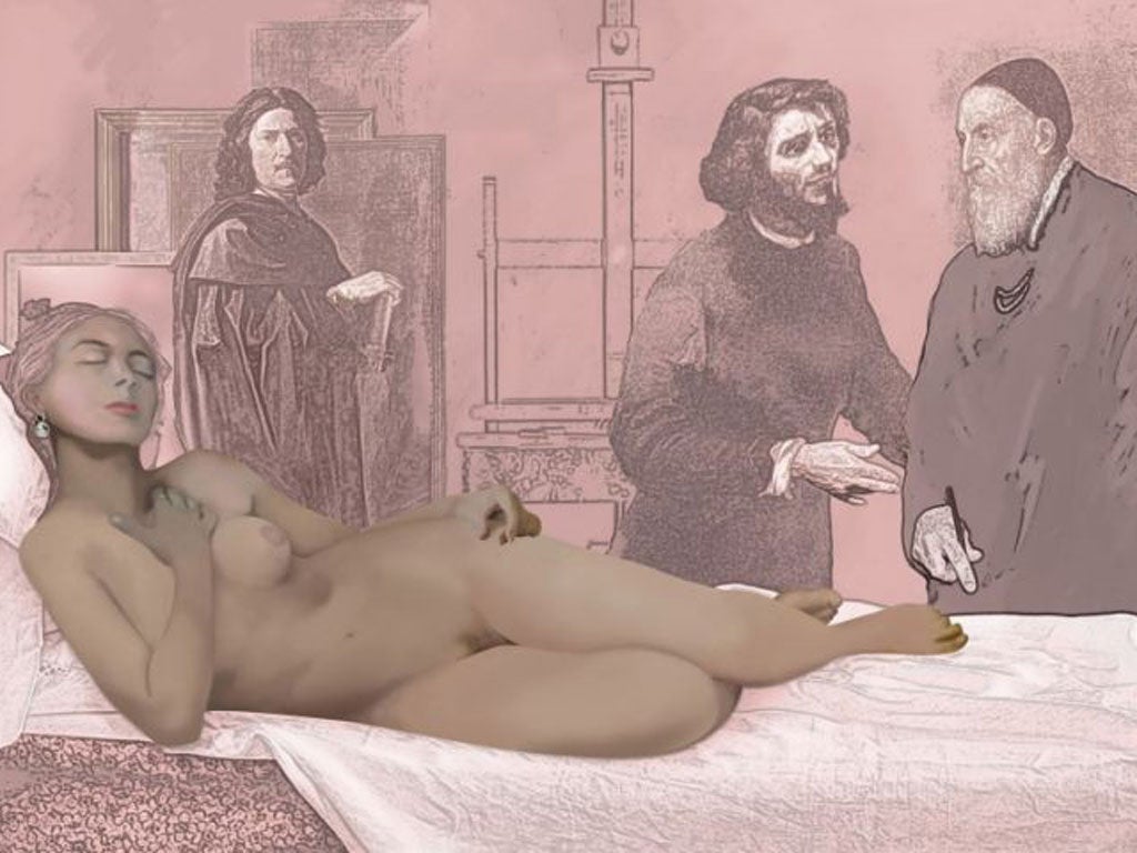 It is the ultimate romantic story of art taken up by the most literate and most technically proficient of modern artists. His intention had been to compose a picture, using computer graphics and a photograph of a 19th-century nude, which he would then paint showing the incomparability of paint in delineating the human form, but adding in a separate photograph of a model's foot as the one unpainted part. One can only speculate, and sense the loss, of the final picture as it might have been painted.