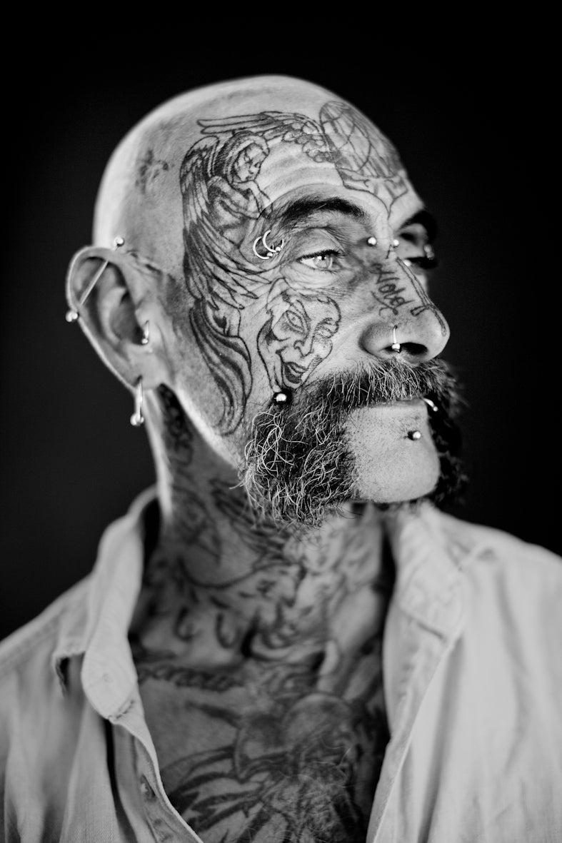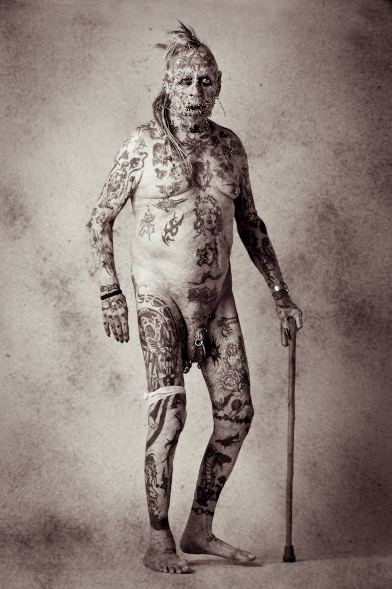 Temperley takes stylised portraits of people from all walks of life, from contortionists and transgender modification artists, to those tattooed with more colours than a peacock's plume.