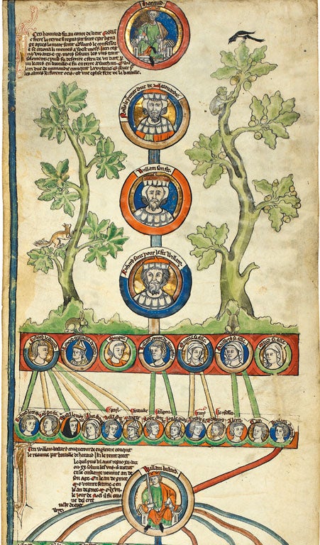 It was to Paris that most of the English kings looked for artistic leadership, through family and linguistic affiliation and the long period of rule over lands in France. Some of the finest works in the show were seized by Henry V's brother, the Duke of Bedford, from the French kings after the battles of Poitiers and Agincourt; others came by way of marriage. The Bedford Book of Hours was presented by Anne of Burgundy, wife of the Duke of Bedford, to the nine-year-old Henry VI before his coronation as King of France. The Shrewsbury Book, a masterpiece of Rouen illustration, was presented by that thug of a military commander, John Talbot, to Margaret of Anjou before her marriage to Henry VI and is packed with illustrations supporting his claim to the French throne.