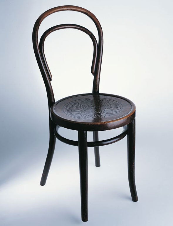 Gebrüder Thonet's mass-produced Model No. 14 chair (1859), the original café chair, was revered by Le Corbusier as "the ultimate in elegant design".