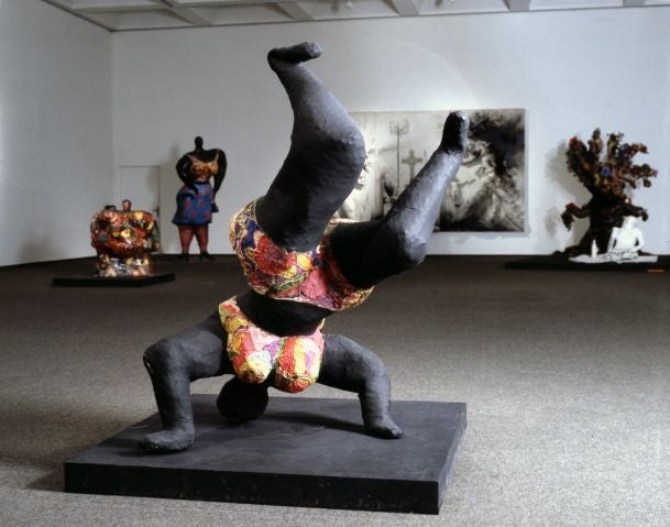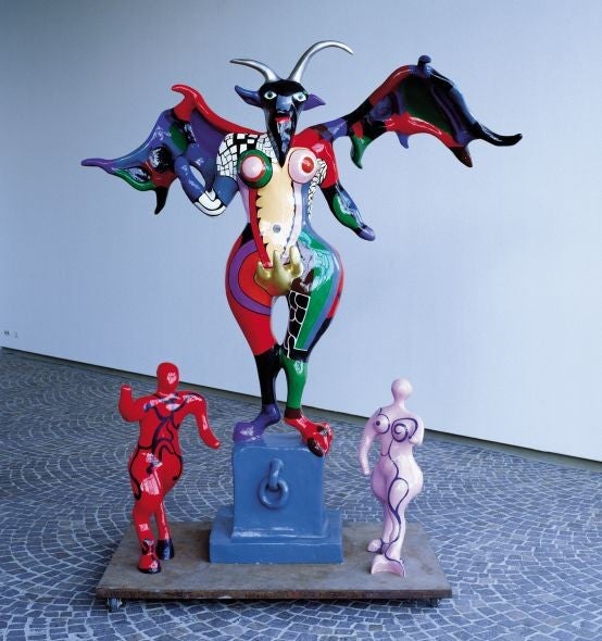 "Hon" is Swedish for "she", and Saint Phalle was a pioneering exponent of one of the dominant styles of feminist art. She fought on the mythic front. Her female figures are archetypal, elemental, symbols of both oppression and exuberance, often simultaneously. Agony-anger-energy-ecstasy is the emotional compound they embody. The damaged victim becomes the revenging fright monster becomes the goddess of free and unbounded power and joy.