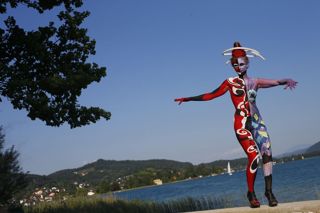 Instead the 15th such annual get-together of scantily-clad, body art enthusiasts took place at the Austrian town of Poertschach this weekend - and the sun shone.