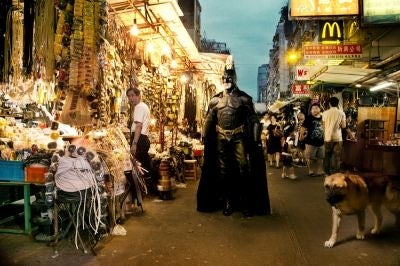 By placing familiar figures such as Spider-Man and Superman in distinctly "Hong Kong" settings, the artist says he "wishes that the traditions in Hong Kong will not face extinction."
