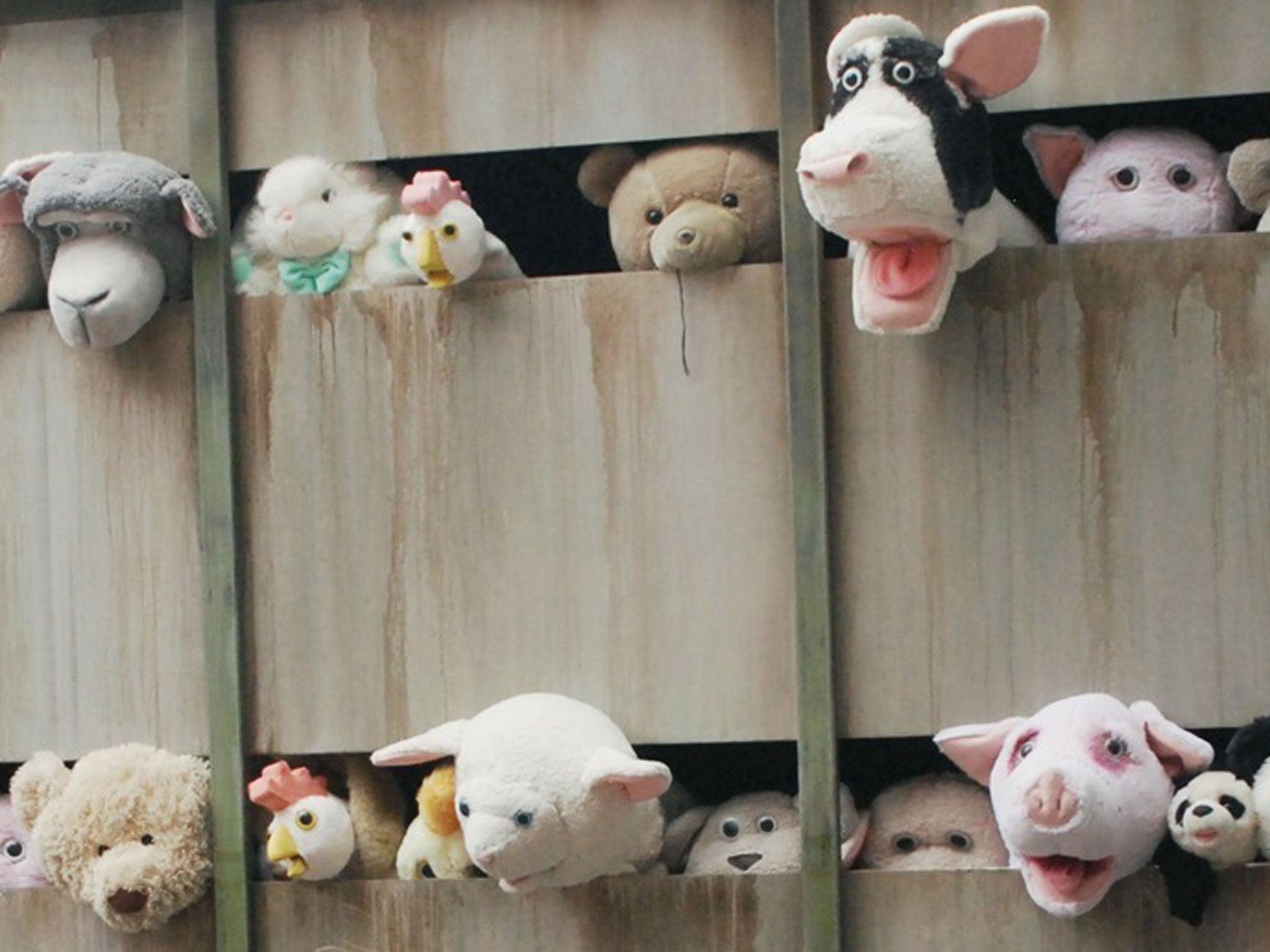 Banksy takes cuddly farmyard toys to the New York slaughterhouse