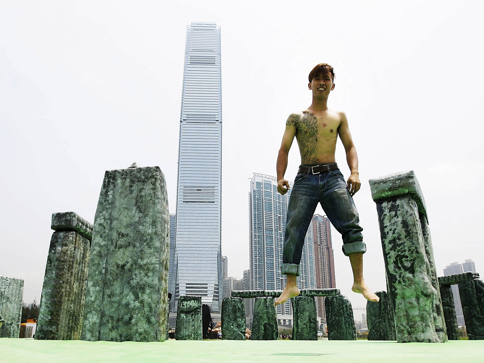 A life-size inflatable replica of famous British landmark Stonehenge has gone on display in Hong Kong as part of an inflatable exhibition.