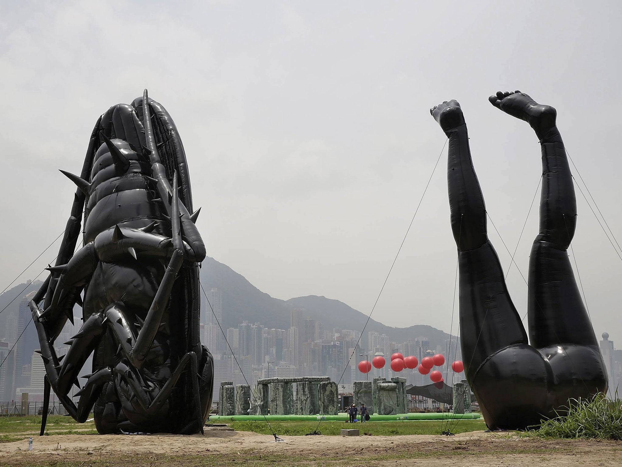 The exhibition also hosts five other installations at the Mobile M+ Inflation! exhibition. The Stonehenge replica stands alongside other inflatable installations such as a huge black cockroach and a giant pig.