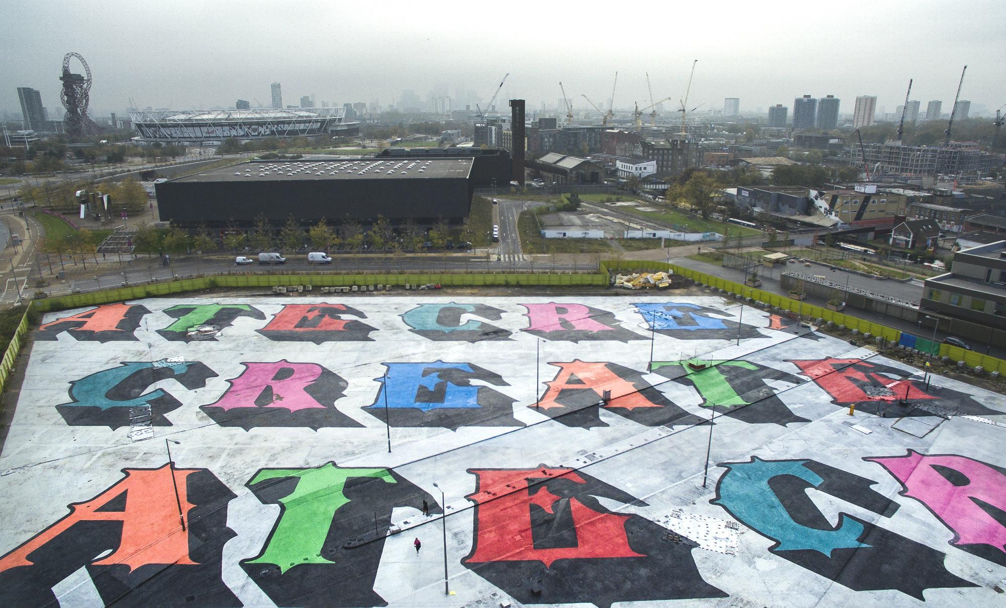 British artist Ben Eine has revealed a 17,500sq metre artwork in east London bearing the word ‘CREATE’.