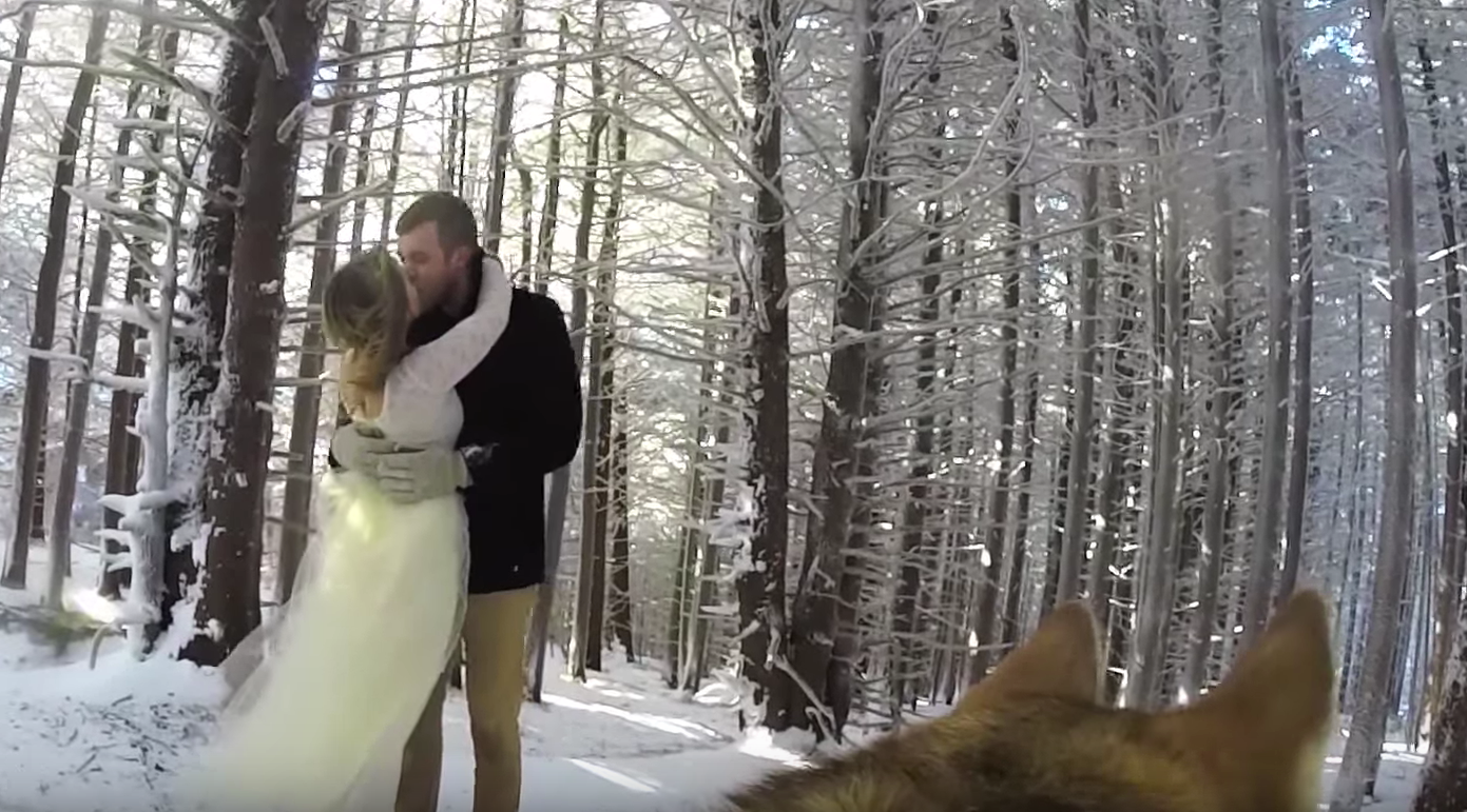 She was strapped with a GoPro and allowed to run free at their ceremony on Roan Mountain in Tennessee, where the couple had their first date 10 years ago, bounding through the snow.