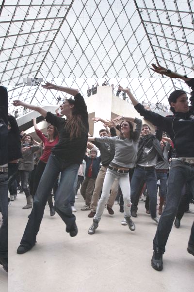 Fifty dancers from the Paris Opera Ballet astounded museum-goers Sunday when they suddenly emerged from the crowd under the Louvre's glass pyramid entrance and started strutting their stuff.