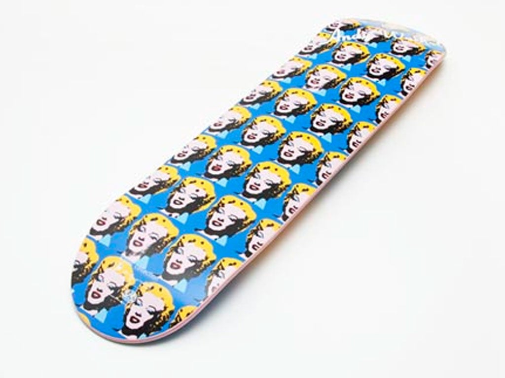 In 2010, the Andy Warhol Foundation licensed Alien Workshop to create limited edition skateboards. The designs included The Velvet Underground Banana and a Marilyn Monroe screen print.