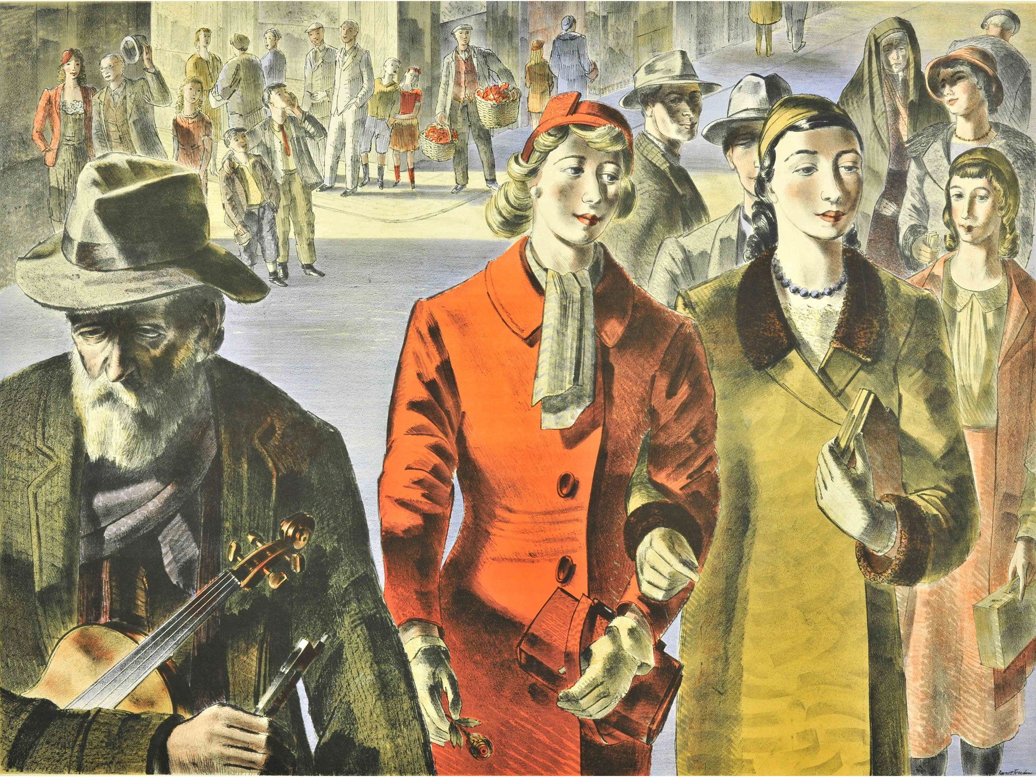 In 1946, Lyons' directors, Julian and Felix Salmon, saw that their teashops were war-worn. Building materials were in short supply and expensive, so the brothers commissioned a suite of lithographs to brighten up their cafés, with 1,500 affordably priced prints of each for sale to patrons.