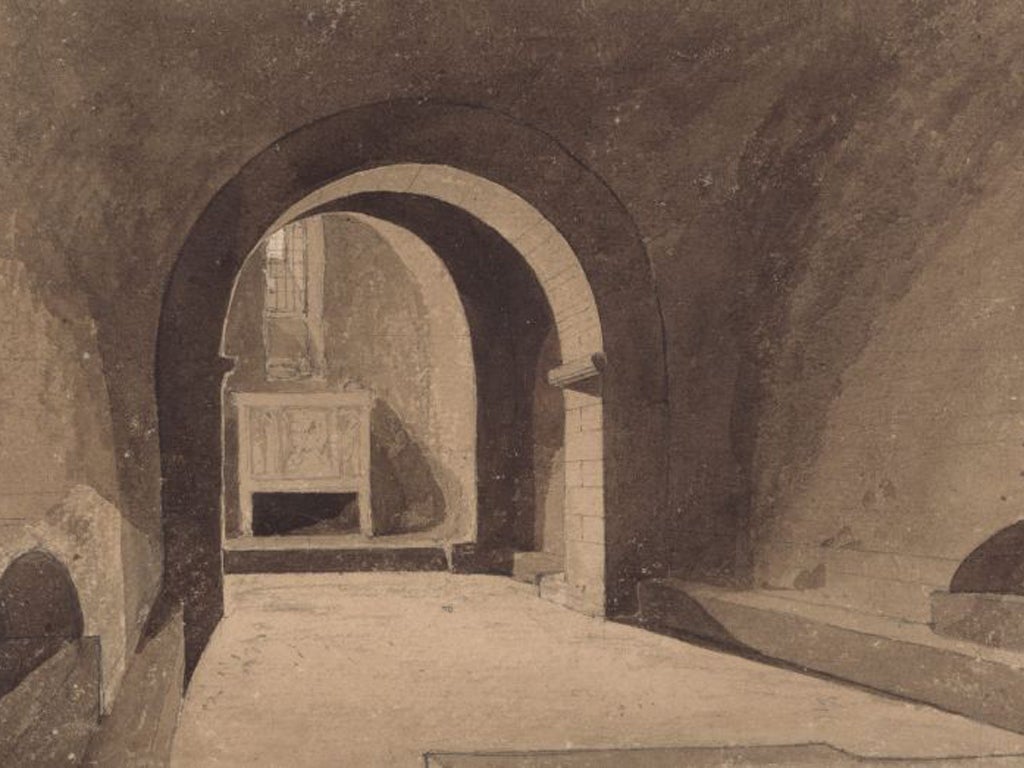 But, as I say, Binyon wasn't like that. For an idea of what he meant about Cotman, we have to divide content from form. However historically backward-looking the works in this show, Cotman's treatment of them is hugely experimental. It's not so much his yellow light as his entirely novel way of putting together a composition. You can see it here in works as unalike as Crypt in the Church of St Gervais, Rouen and Domfront, from the Tertre Grisière.