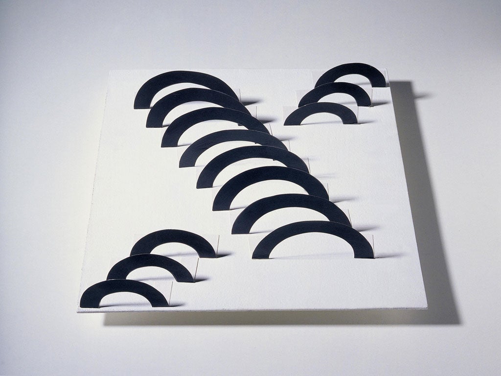 What separates Pape from the other three – she called herself a "Neo-Concretist" – is less that she was Brazilian than that she was 20 years younger than them. Moss, Martin and Diller all ended up at Constructivism: Pape started off there. As a creed, the movement had always faced the problem of where to go next – what to do with its architectural underpinnings, the urge to build. When Pape died in 2004 at the age of 77, she had lived long enough to answer that question.