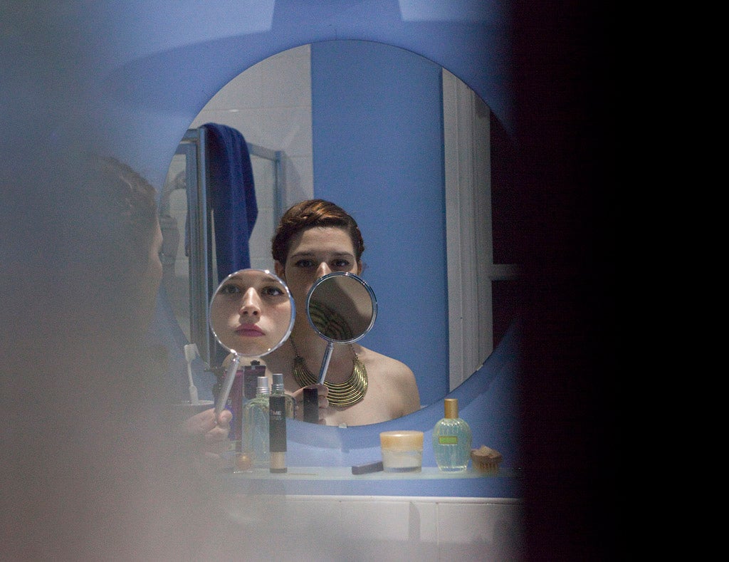 Then, all of a sudden, a naked woman’s eyeball appears opposite ours. She applies her eye make up with tender care. We step back, ashamed of our voyeurism. Titian too was a voyeur, Wallinger seems to be murmuring, behind the respectable mask of mythology. Wasn’t Actaeon a shameless ogler, punished for staring at luscious female flesh?