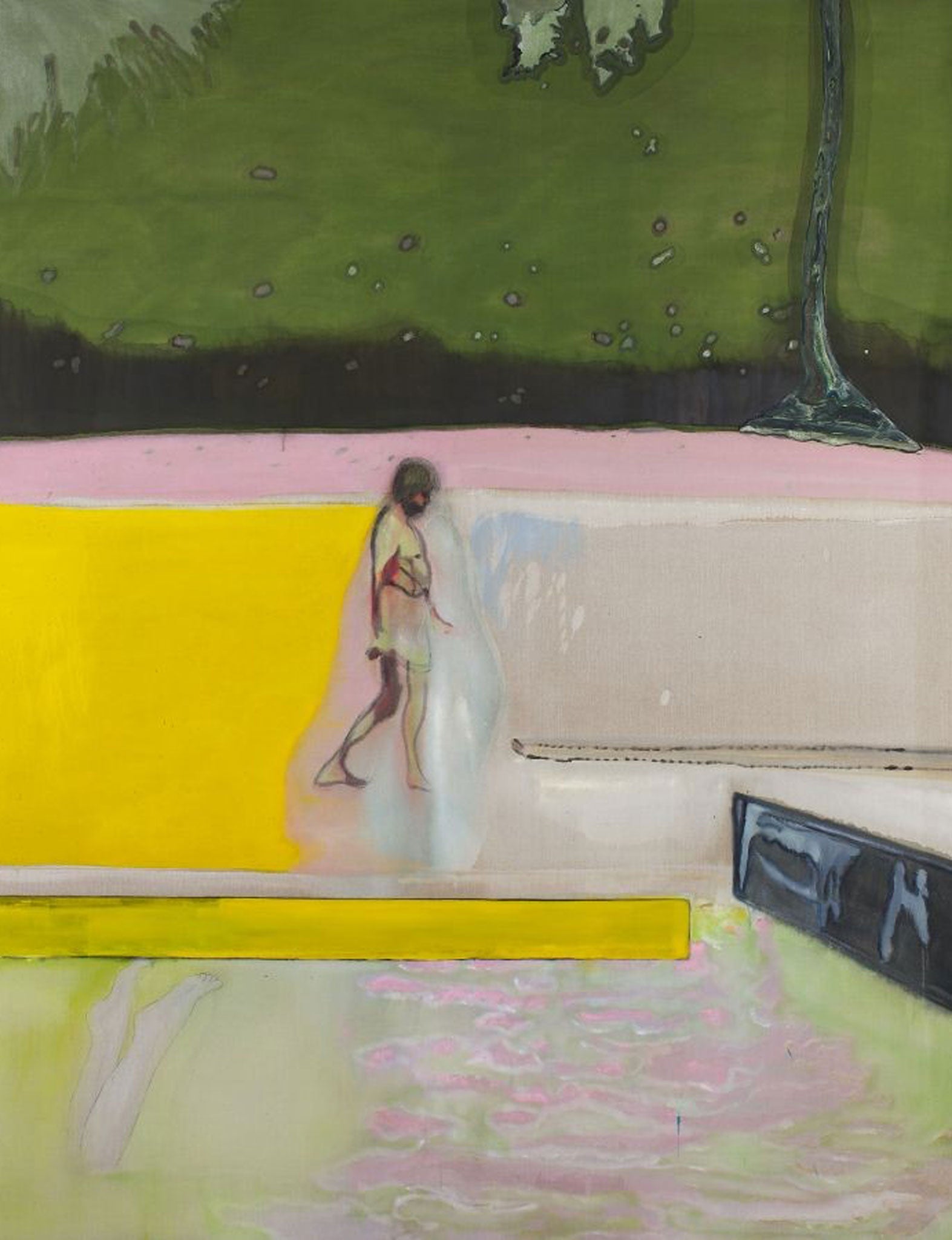 Just as Matisse, a growing influence on Doig, found in Morocco a new palette and a new way of composing space, so in Trinidad Doig has encountered a whole new range of colours and of culture. In comes Gaugin’s yellows and reds and sculptural figures, so does Matisse’s light greens along with the dense foliage of the jungle and the horizon lines of sea and sand of a Caribbean island.