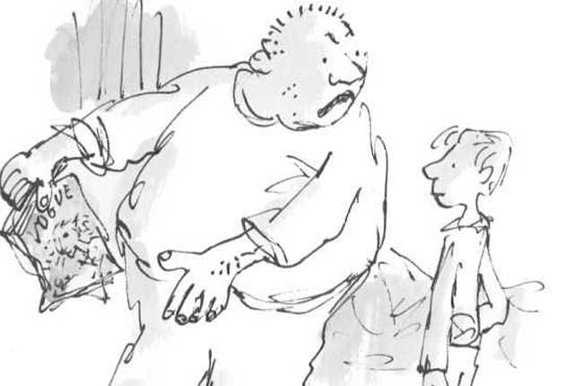 Nor was that the only thing I stole. I also stole Quentin Blake to illustrate my writing. Well, I didn't literally steal him by snatching him in the street, bundling him in the boot of a car, and telling him he'd never see his family again unless he started drawing. Of course I would have been forced to do that had he refused to work with me. No, I stole the idea of collaborating with Quentin. It is a little known fact that the first version of Charlie and the Chocolate Factory was not illustrated by Mr Blake but by Joseph Schindelman. Now it is difficult to imagine a Dahl book without Blake's illustrations. What Quentin does so brilliantly is give a sense of what Dahl's characters look like without defining them exactly. The illustrations are impressionistic. Watching a film of one of Dahl's books can be disappointing, as a film never asks you to add your imagination in the way a book does. For me, brilliant though both actors were, Willy Wonka is neither Gene Wilder nor Johnny Depp, but somewhere deep in Quentin's deceptively simple black-and-white drawings. You also sense that Dahl was so enthused with his collaborator that his writing increasingly made room for Quentin's illustrations. By the time of George's Marvellous Medicine, the drawings are not illustrating the story but rather an integral part of the storytelling.