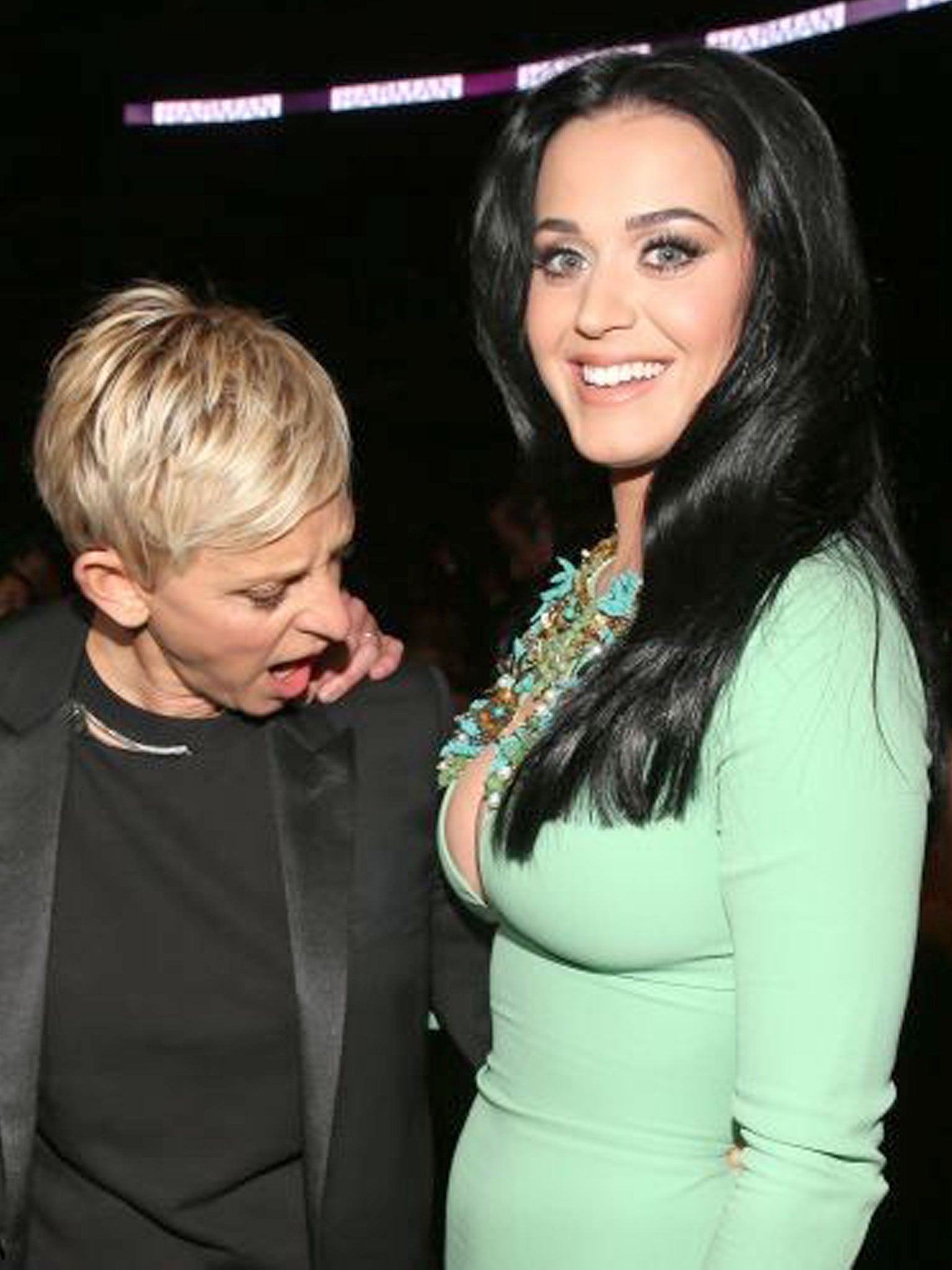 Up close, she's like something you'd purchase from Ye Olde Fashioned Sweet Shoppe. She is indeed good enough to eat, with a peppermint striped dress; sugared nail polish; black hair like liquorice. She may have been, briefly, Russell Brand's Teenage Dream, but the secret to her success is that Perry is a girl's girl, swapping notes on dresses and nails before the talking officially starts.
