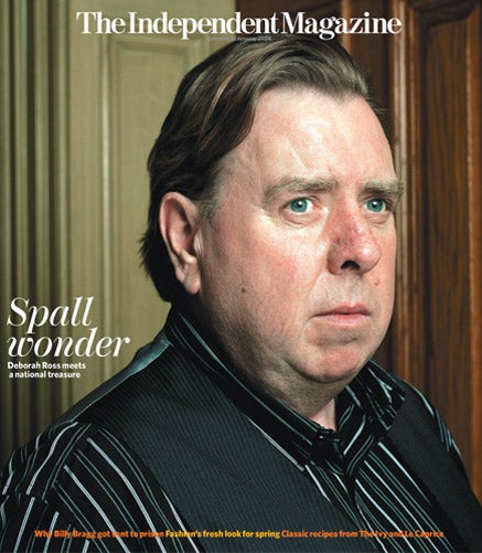 The work. The work that, at least in the public's mind, probably began with Barry, the dim electrician in Auf Wiedersehen Pet and had progressed though the Mike Leigh films, particularly Secrets and Lies which, in 1996, was nominated for five Oscars, although his particular performance as Maurice, the photographer being slowly defeated by his fastidious wife, was not. I say I was surprised about that. He says he was delighted. At that time he was receiving treatment for what he refers to as "my illness" – leukaemia – and the way he saw it was like this: "I thought: I'm not going to live and win an Oscar at the same time. Fate said to me: 'If you get an Oscar you are going to die.' So when I didn't get nominated I thought God is just letting me know that I'm good for another three years." He's been good for the past 11 years, so hopefully that is that. Don't you remember, though, initially hearing that Timothy Spall had leukaemia and feeling somehow personally crushed, devastated? That there couldn't be anybody who deserved it less and if there is a God, he's a shit? Tim's not sure if he believes in God. "I thought about it a lot when I was up against it and came to the conclusion that although the thing I was talking to was listening, it wasn't a bloke with a beard." What was it then? "I don't know. Just something that was looking after me."