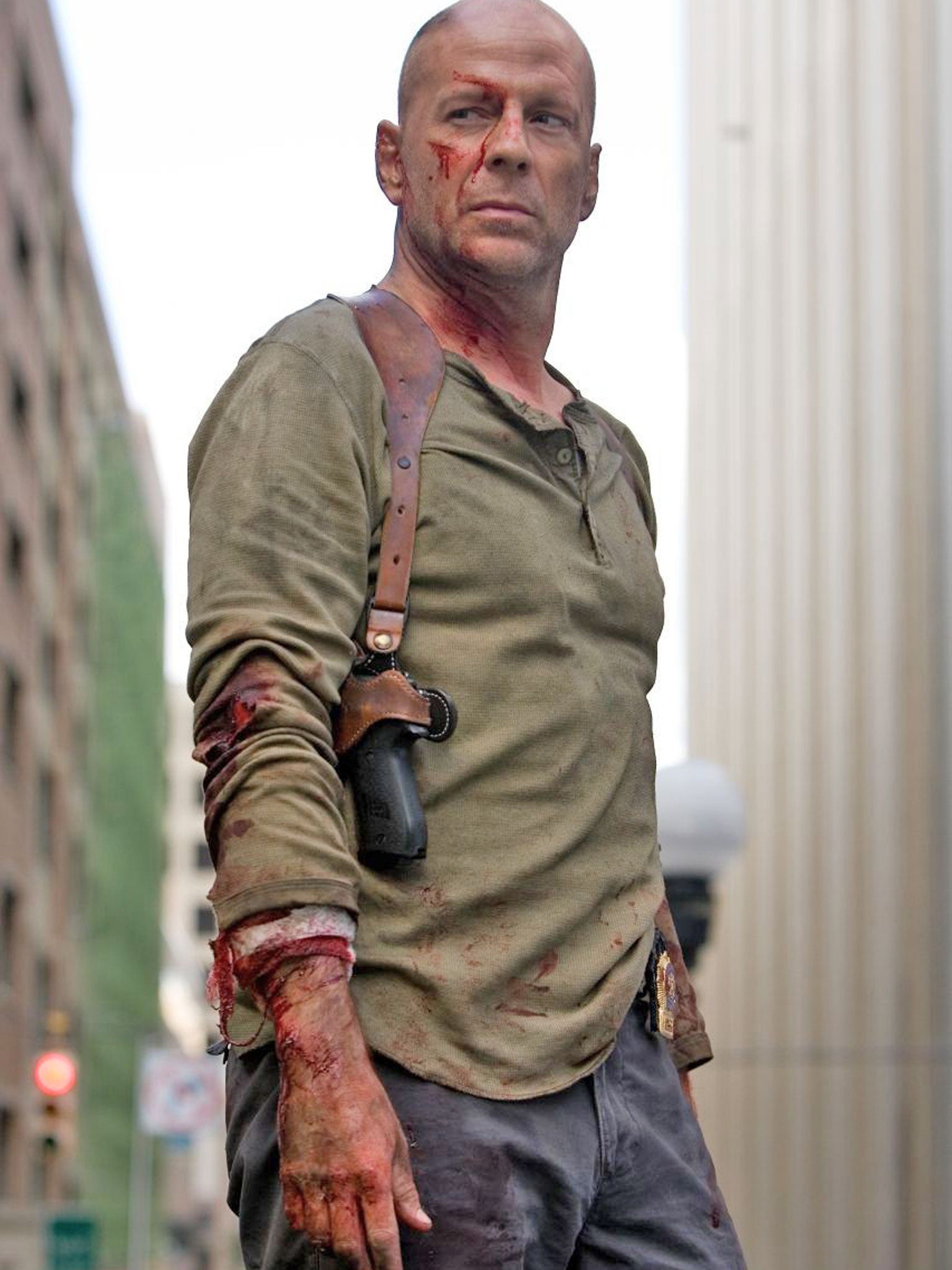 McClane tumbled down the fire escape into a Hollywood dominated by invulnerable knuckleheads played by Arnold Schwarzenegger and Sylvester Stallone. But he became the most enduring of the era's action heroes precisely because he was fallible and flawed, an almost-regular guy with whom the neurotic New Man could, if not relate, at least sympathise. He got by on his wit and his wisecracks, as much as his physical attributes: a latter-day Philip Marlowe (with a Heckler & Koch submachine gun). He has been known to blub.