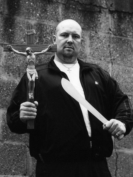 As the violence increased, Mr Pridmore never left home without his customised long coat containing special pockets for a machete and a can of mace. "It was a very weird life," he recalls. "I'd be sitting on my sofa, watching Little House on the Prairie with tears streaming down my cheeks. Later that afternoon I might have been practically beating someone to death. It was like the two sides of me never met."