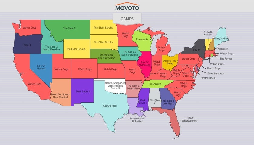 New Hampshire gets geeky by furiously downloading Minecraft meanwhile, but sadly Goat Simulator isn't top anywhere in the US.