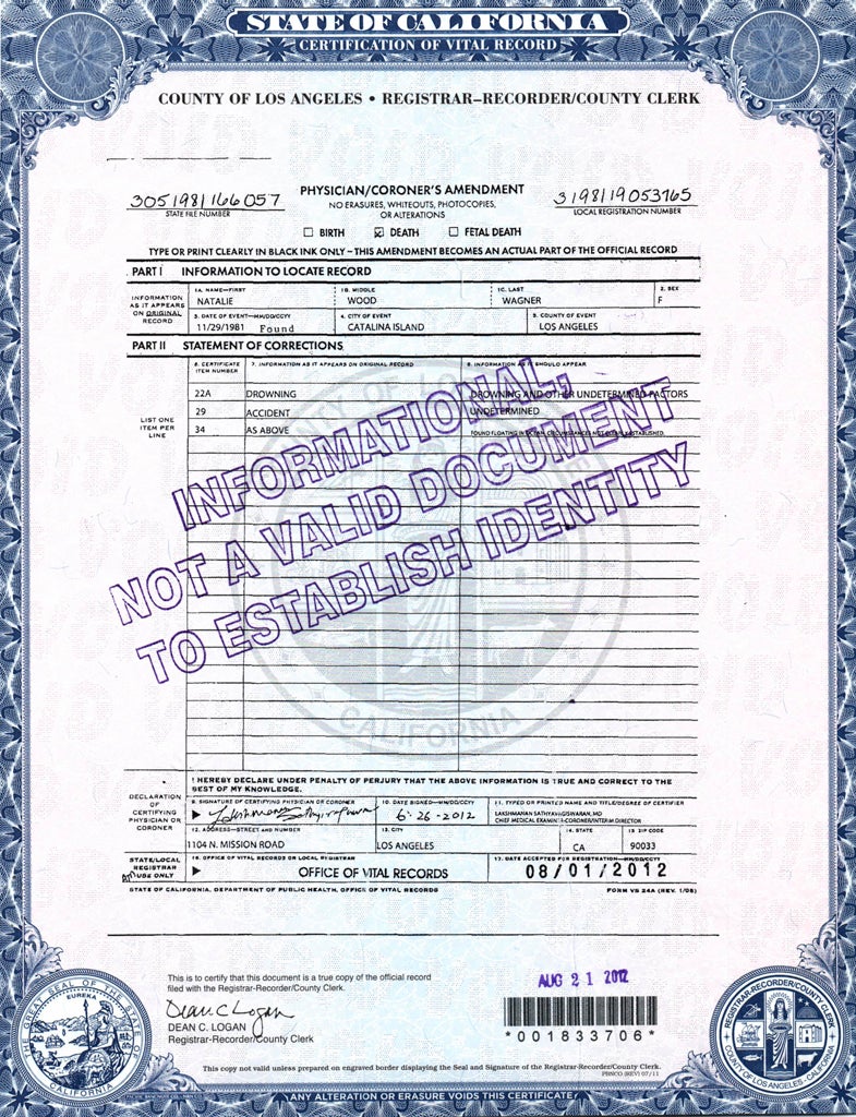 Natalie Wood's death certificate has been changed to reflect some of the uncertainties and lingering questions surrounding the actress' drowning more than 30 years ago in the Pacific Ocean off Southern California.