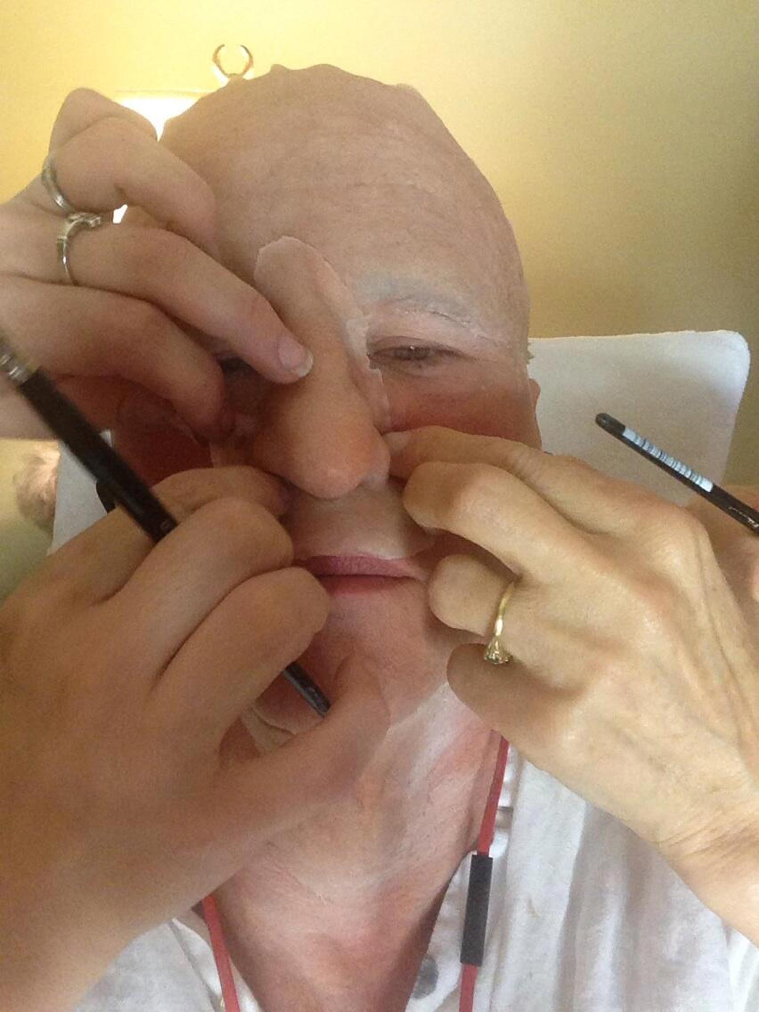 Val Kilmer has given fans a peek into the make-up room, publishing photos of himself preparing to play American author Mark Twain.