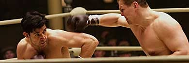 The picture is lightened by the fond interplay between boxer and coach, though it makes little effort to keep us on our toes. It's a foursquare story of underdog resilience, and one looks in vain for a twist on the material. At one point the camera mists up the focus to convey Braddock's punch-drunk vision, and I half-thought this might be signalling the onset of blindness; was fate about to pull a terrible surprise on someone who lived by his quickness of eye? A false alarm. The story's climactic title fight, in which our bantam hero is pitted against a gigantic brute named Max Baer (Craig Bierko), pivots on the troubling fact that Baer twice killed opponents in previous bouts. So we're asked to fear for gentleman Jim's life, yet the orchestral swell of the score and Howard's characteristic sappiness point too clearly in which direction the film will go.