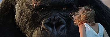 It proceeds in three distinct stages, echoing the structure of the movie. When Ann first turns somersaults for Kong's pleasure, the playfulness is incongruous, amusing. Then, the mood turns to pure exhilaration as Kong plays jungle scrapper, with no fewer than three specimens of tyrannosaurus rex, laying about their torsos with a ferocity not seen since the young Mike Tyson. (Some anger-management issues in common here.) Finally, when he gently picks up Ann in his mighty mitt and they stare at one another in close-up, we sense the oncoming tragedy of their requited but impossible love; the depth of feeling in Kong's regal gaze is beautifully matched by Ann's luminous compassion: is it loneliness she sees in those dark eyes? Watts hasn't been this affecting since her entranced ingenue in Mulholland Drive, and given that most of the time she's acting against technology, it's doubly impressive.