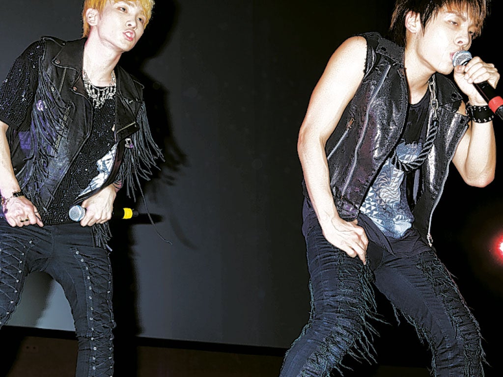 2PM are seven boys who like to get their biceps and pecs out; Girls Generation are an extremely cute, perky nine-piece girl group who dress in matchy-matchy outfits; Super Junior, an overwhelming, 13-strong troupe of spiky-haired male pop poppets. A carefully nuanced balance of toned, taut, teasing sexuality, and super-sanitised sugar-pop innocence seems to be a feature of the phenomenon; as Taemin tells me, "that's our charm – to be young and cute as well as sexy. It shows our true colours."
