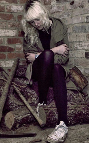 "A lot of things scare me," she continues, her blue eyes peeking through her choppy fringe. "I pretty much live my life in fear" The thought of losing control terrifies her; she doesn't drink and, she says, being around anyone doing drugs freaks her out. She's as scared of success as she is of failure. But what frightens her most is the prospect of loneliness. "I wish I wasn't 17 because you have to fit in and it's hard," she says. "I can feel myself drifting from my friends as our lives grow further apart. And there's no sympathy for me. I've dropped out of school, I'm the weird one. The thought of being out at a club in a big group of people is my idea of hell. But I love my friends, and at the end of the day I don't want to be alone."